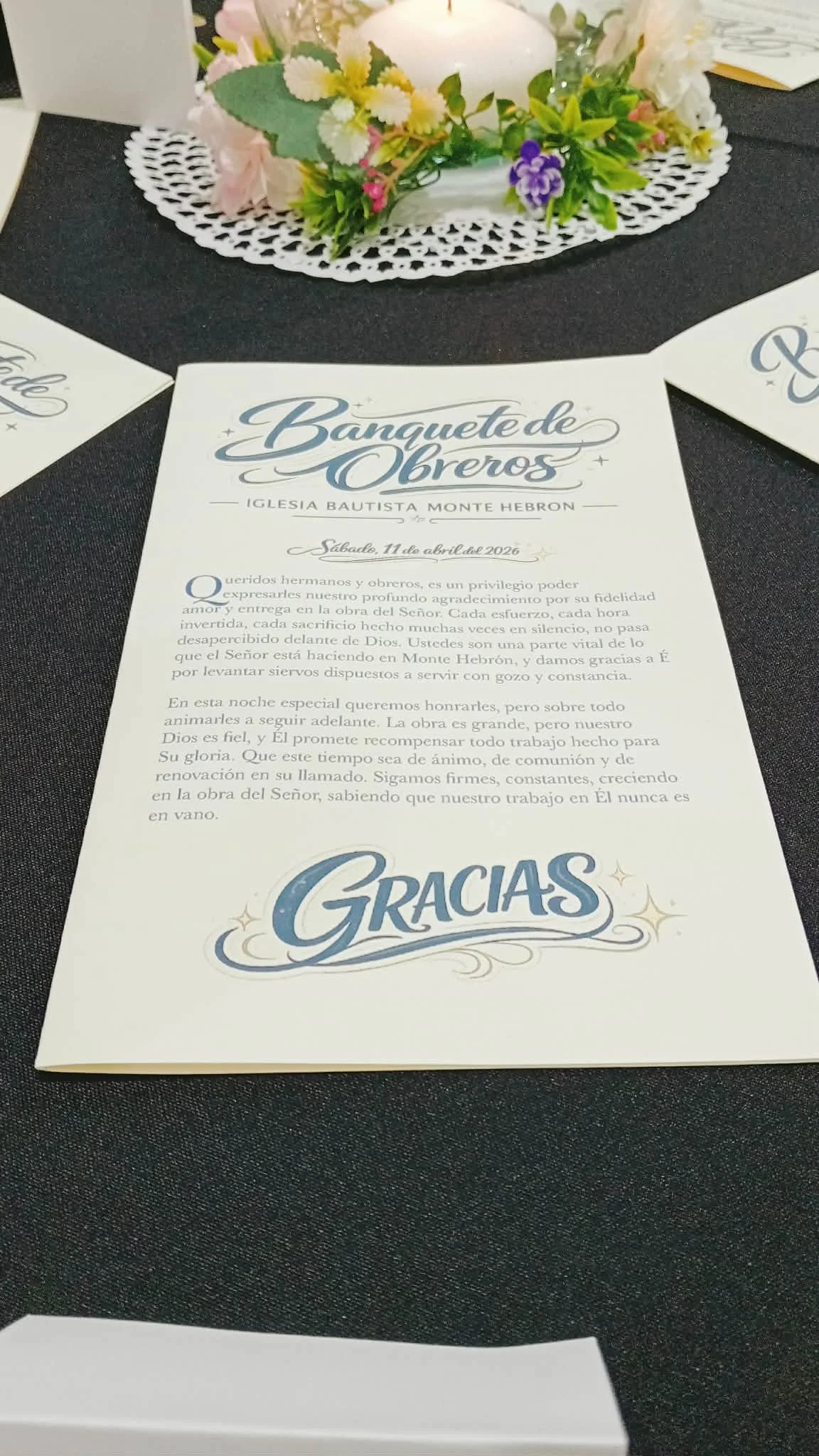 Durante el evento, los obreros firmaron un cuadro con la palabra “GRACIAS”, el cual será colocado en un lugar prominente dentro de la iglesia como un recordatorio constante del corazón de servicio que caracteriza a nuestra congregación.